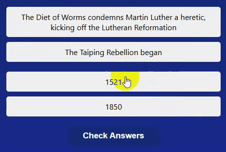 Match each historical event with its correct date to win